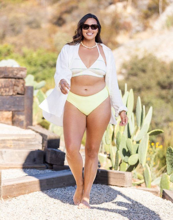 Stylish and fashion forward yet thicker chest band provides support. Halter top with twisted back is adjustable and supportive to all sizes. Similar adjustability and shape as the Stevie Top but with higher bust support