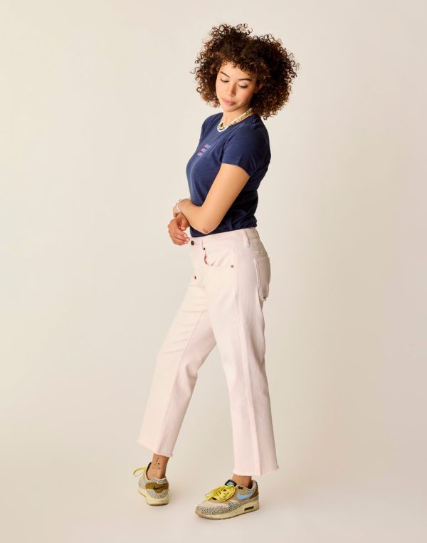 Let your ankles shine with the Austin Crop jean’s flattering symmetrical cut. A looser fit, raw edge step hem and zip fly with button closure beg for crisp fall or early spring walks. The mid rise jean that will become your everyday.