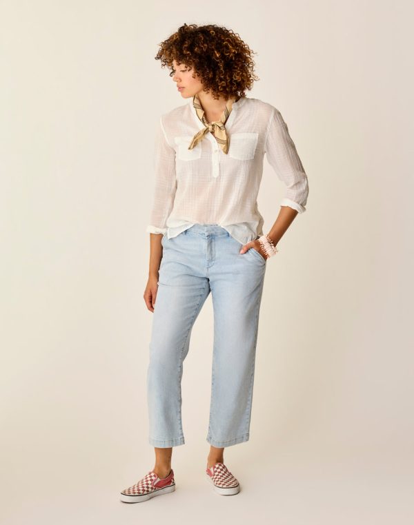 Like her leg the Spencer is a straight shooter, and as dependable as a rodeo clown at the running of the bulls. Savor her classic fit, chino styling, and finished hem. Then wash it all down with her lightweight denim demeanor, and back welt pockets with light distressing.
