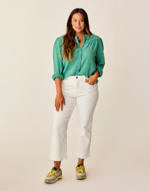 The Sylvie brings it with our Victoria Twilight Stretch Denim, zip fly with button closure and of course a cropped flare. A high-rise jean that is fitted through the thigh with a cropped mini flare leg. If the Tibby Flare is too long for you, this is your jean.