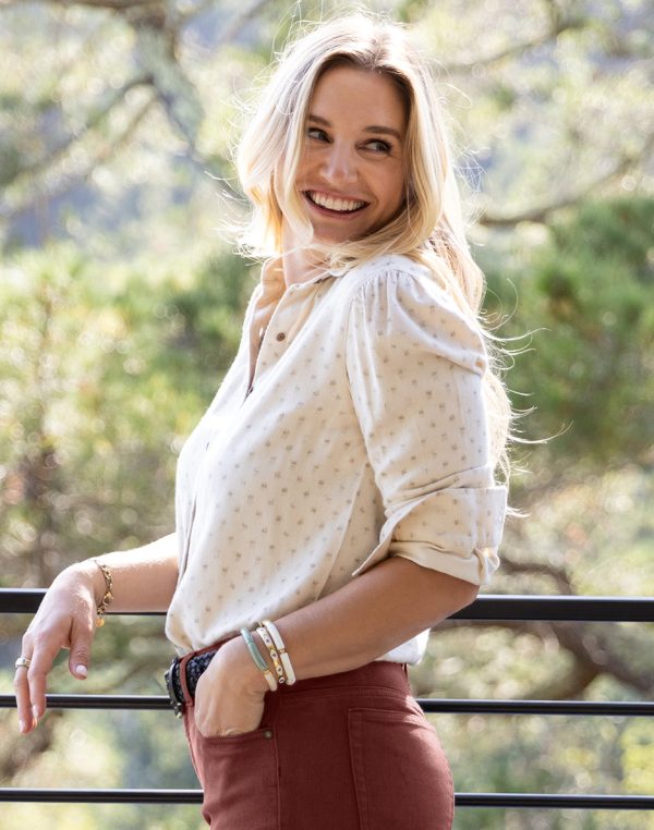 Similar to the Fairbanks, this little number is a versatile layering piece, that drinks up compliments like lips at a wine mixer. Her Herringbone Twill fabric is brushed and her sleeves subtly puffed.