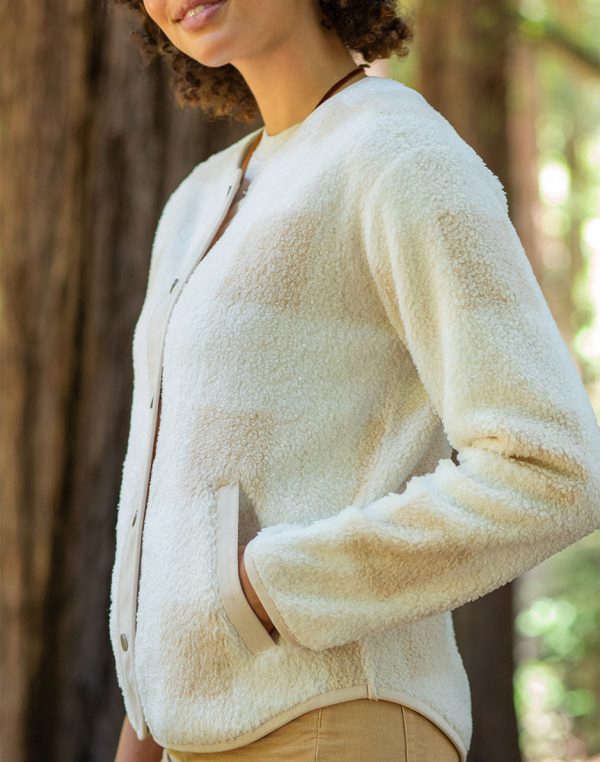 Let your inner lumber jack shine with this ultra soft little number. Made from recycled polyester (made from recycled bottles), the Posie Boucle touts a curved hem, twill placket and bindings, plus metal snaps that keep this ax sharp.