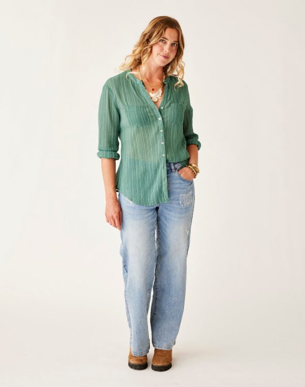 Carve Designs Long Sleeve | Dylan Gauze Tunic: Forest Multistripe Women