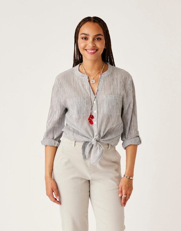 Our favorite Coastal Gauze fabric in a full button tunic style. This top is so versatile it’s a must have for all. Layer it over a tank or under a vest. Wear tied at the waist or wear it long and untucked.
