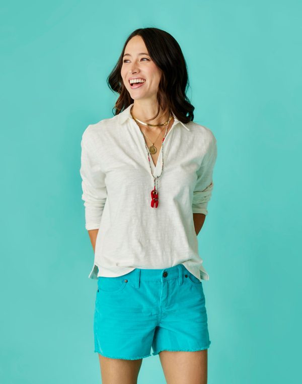 Carve Designs Long Sleeve | Mara Slub Polo: Cloud Women