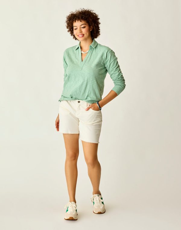 Carve Designs Long Sleeve | Mara Slub Polo: Haze Women
