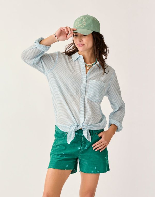 Carve Designs Long Sleeve | Taylor Gauze Tunic: Lagoon Stripe Women