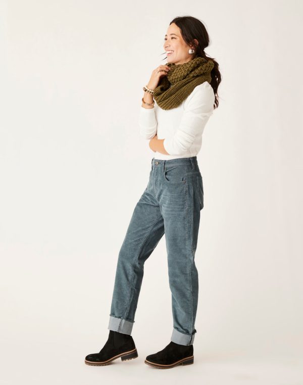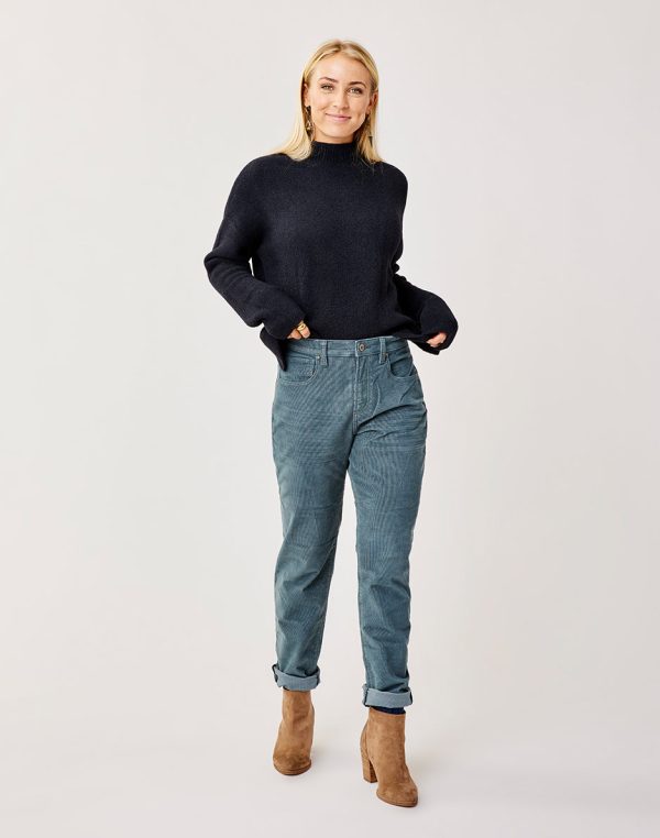 Styling casual comfort with the same relaxed fit as the popular Carson Cord, but more snug around the waist. High rise waist, zip fly with button closure and cuff detail with raw hem give these pants some claims for fame.