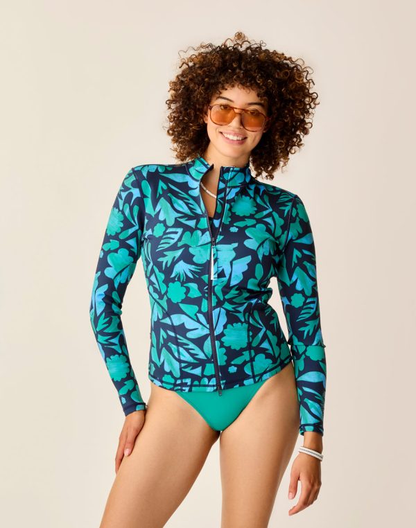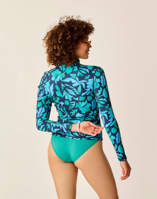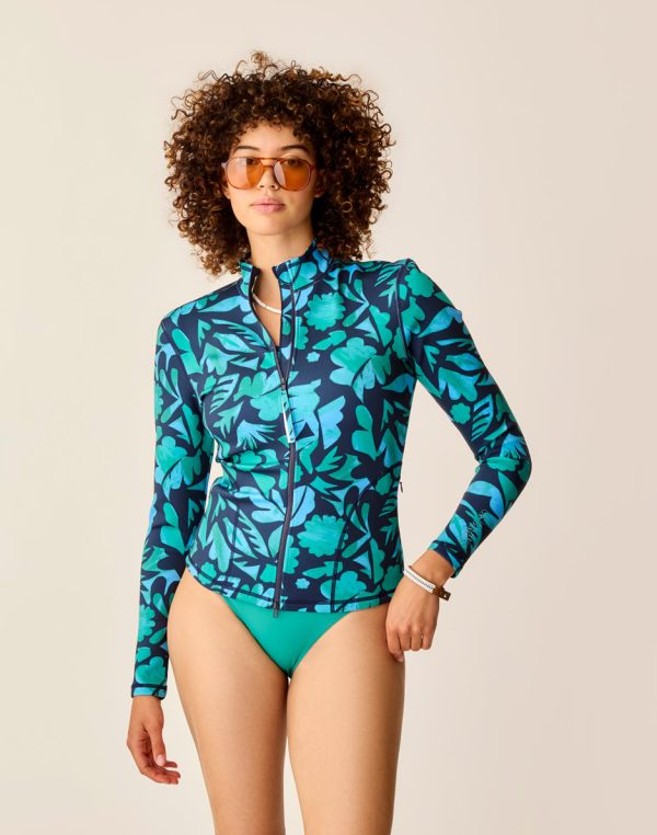As part of the Land to Sea collection, the Stella enjoys aquatic adventures and landlocked excursions alike. Contrast sleeve cuffs make this casual zip-up effortlessly stylish, and the lightweight 1mm neoprene-free material is quality you can feel. The perfect protection from the elements when a wetsuit is too much and a rashguard too little. Made to be worn over our swimwear of choice.